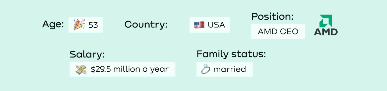 ▫️ Su started her career at the Texas Instruments tech company. A year later, she moved to IBM, where she grew from an ordinary researcher to the Development Center vice president. Lisa worked at IBM for 13 years in total.