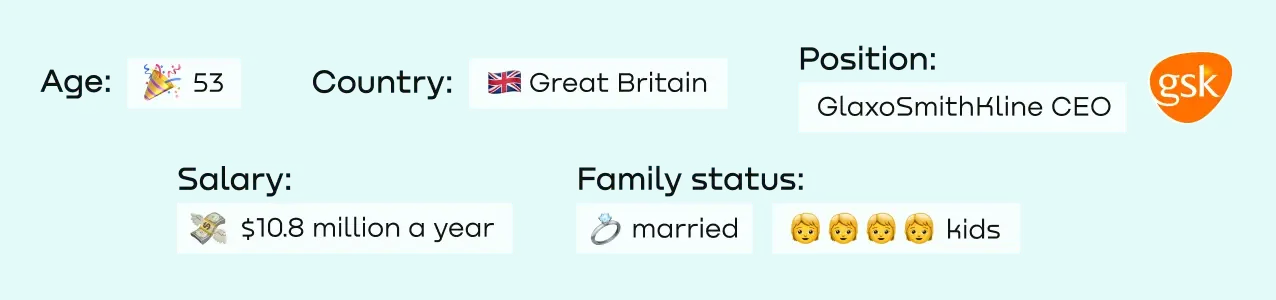 Emma attracted several famous personalities to the company. For example, Luke Miels, who left his leadership position at AstraZeneca for the sake of GSK, and Karenn Terrell, CEO of Walmart (now GSK Chief Digital Officer). After that, investors changed their attitude toward Walmsley.