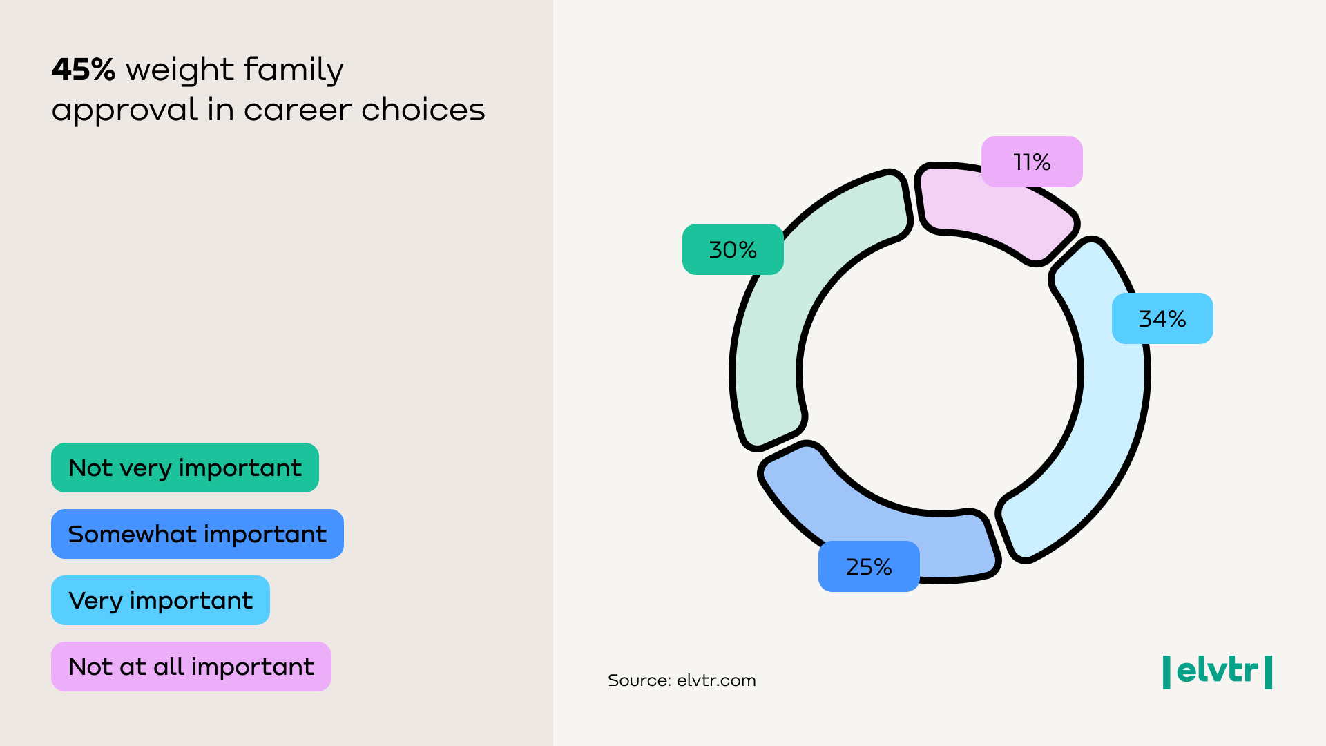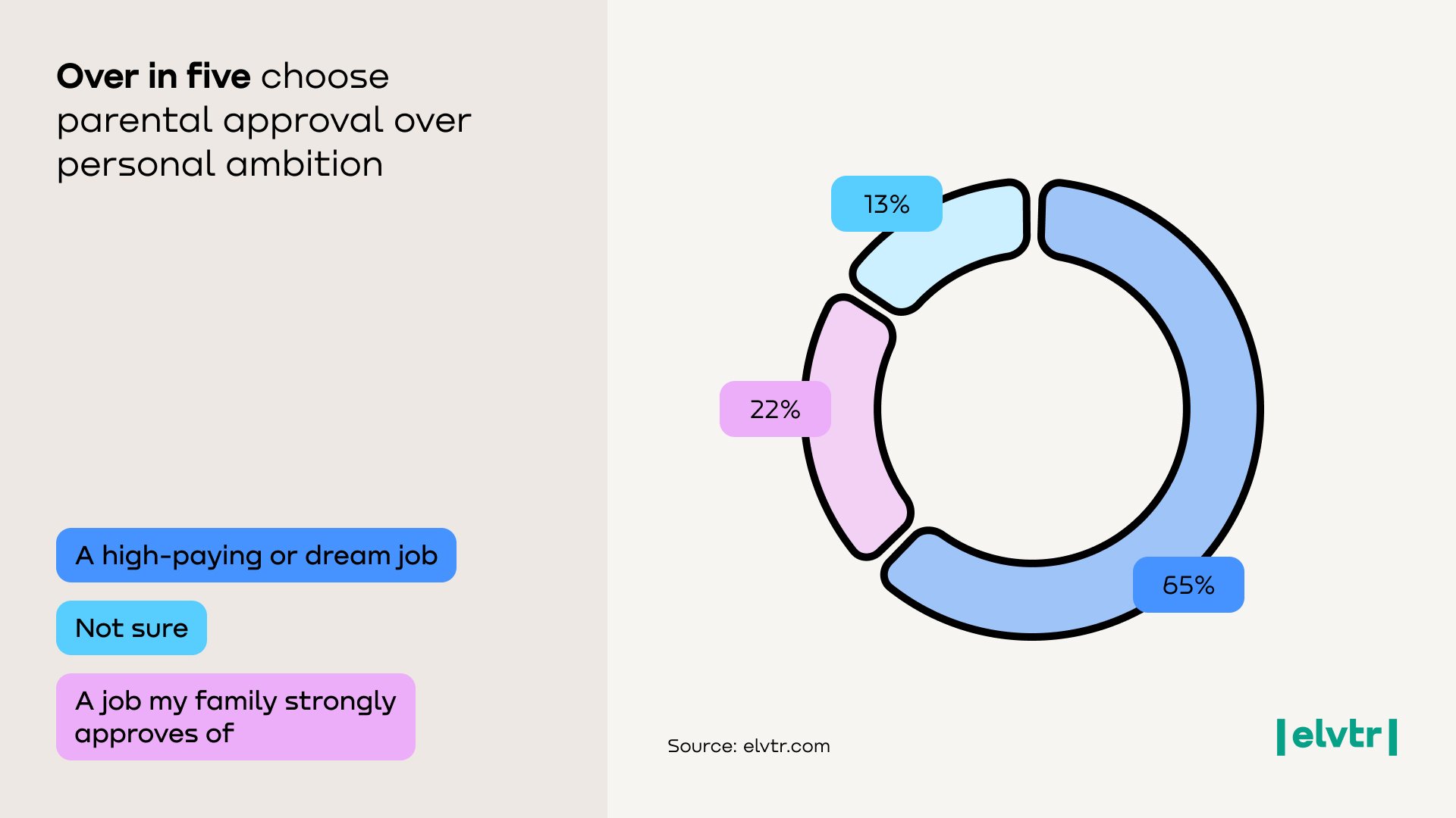 A surprising 22% of young professionals would give up their dream job just to win family approval. While the majority chase their own career goals, a notable minority — over one in five respondents — would settle for a job their family strongly supports, even if it’s not what they truly want. This shows that for some, parental approval can outweigh personal ambition, highlighting the lingering influence of family expectations on career decisions.