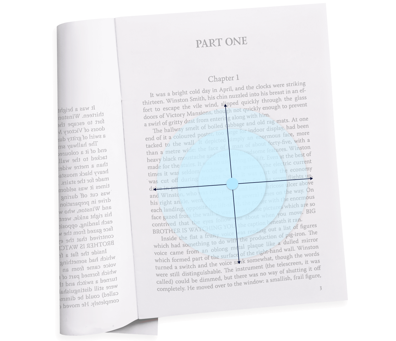 This method allows you to learn to perceive information in the peripheral vision field. Imagine a green dot in the centre of the book page and concentrate your attention on it for 10 minutes.