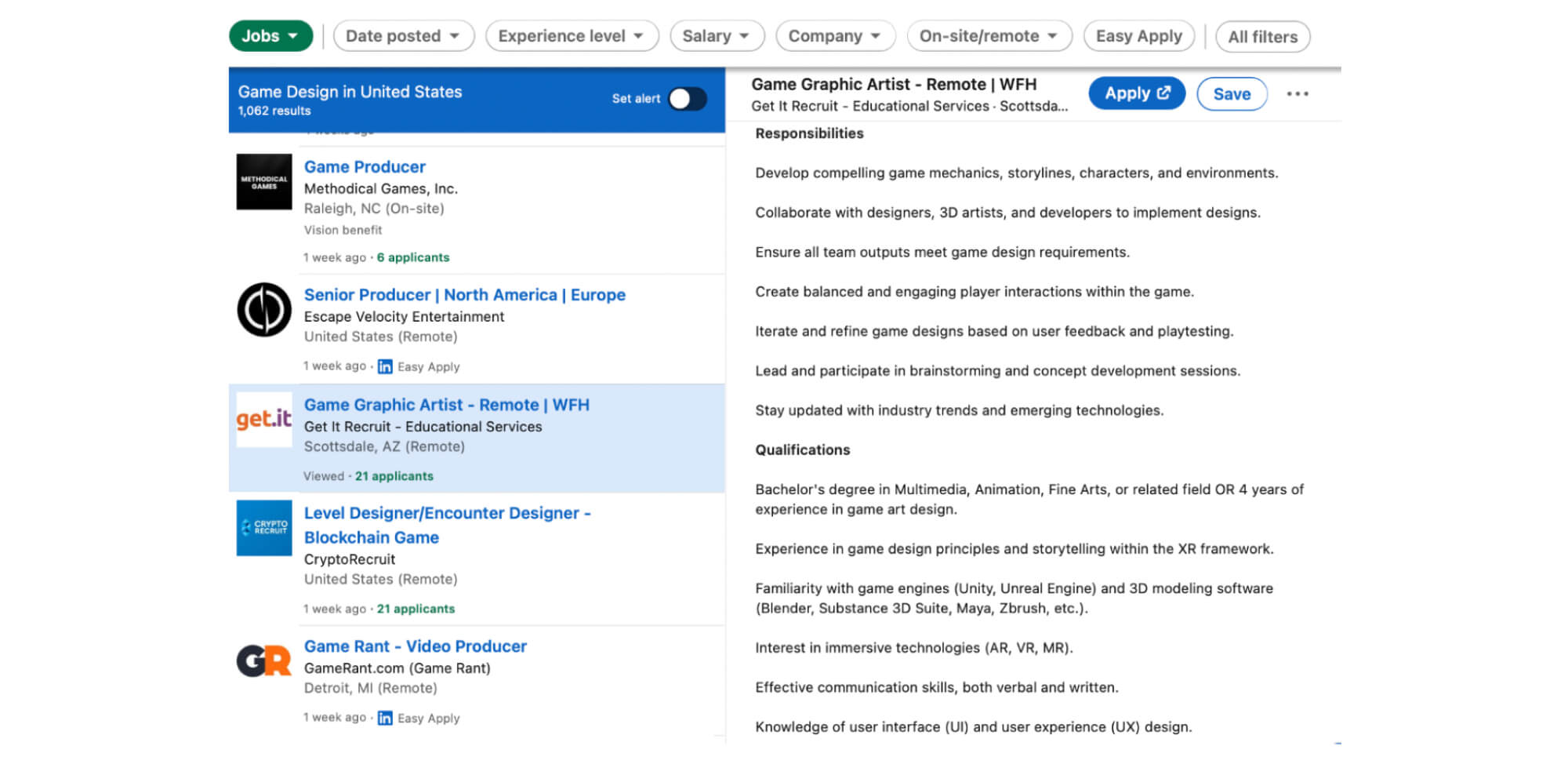 Consider, for instance, a Game Graphic Artist vacancy in the US.