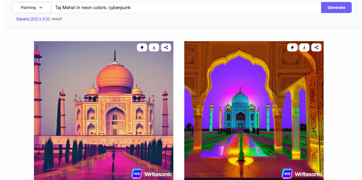 Here's what the bot generated after our request of the Taj Mahal image in Painting style: