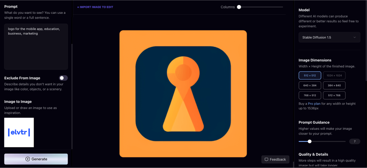 As a test, we asked the service to make a logo for the ELVTR app, uploading our current logo as an example: