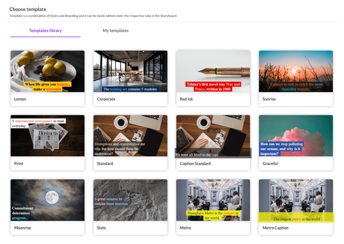 During the next step, you can choose a visual design from the service's database or upload your own. First, you shall decide on the type and style of the text: