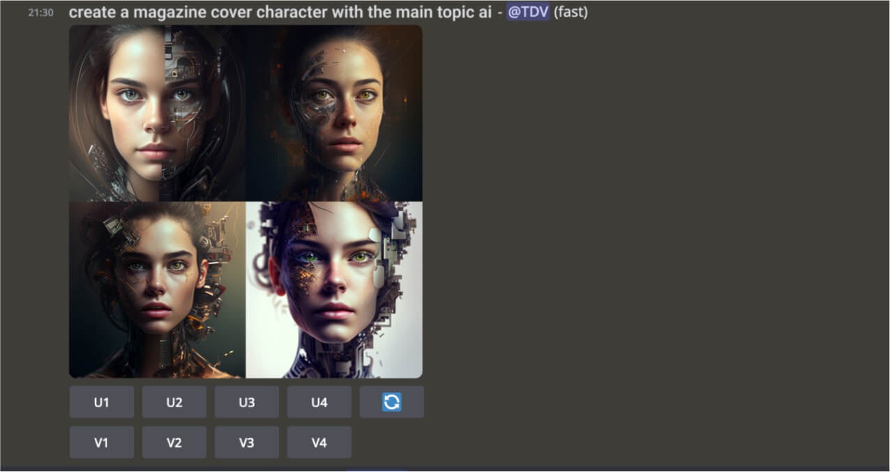 As an example, we asked Midjourney to generate a character for the cover of ELVTR magazine.